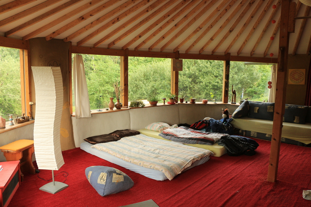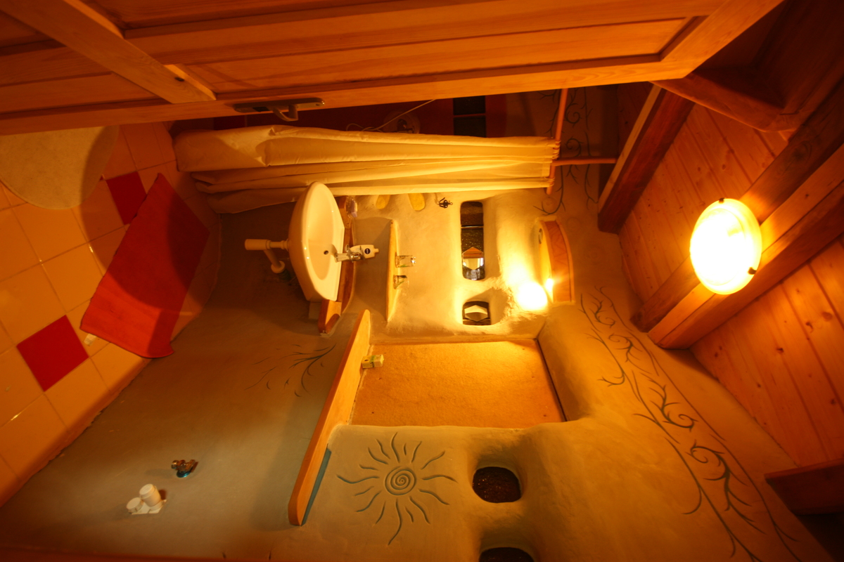 Můžete vyzkoušet bydlení v přírodních apartmánech s vlastní koupelnou a kuchyní jako „Slaměná jurta„. Také je zde dům „Srdce“ na tmu, které má 2 pokoje a obývák, ale zabedněna okna a je třeba si svítit. Ještě je zde minidomek „Hříbek“ na tmu, kde lze odbednit okno, vhodné pro 1-2 osoby (postel 200x130cm). Tyto domy mohou být jen pro vaše soukromí, tedy nikdo vás nebude rušit, kromě společné prohlídky všech domů v neděli ráno 9-10 00.