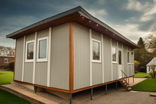 Na prodej unikátní mobilní dům 50m2, 10cm tepelné izolace PUR (srovnatelné jako 16-20cm EPS nebo minerální vaty), tedy nízkoenergetický a u mobilních domů vysoký tepelný komfort. Modulová stavebnice skládaná z panelů o velikosti 120x250cm a proto lze nejen vnitřní příčky upravit dle tvarových potřeb, ale také lze jako stavebnice skládat i venkovní panely, jako okna, dveře, terasa, prosklené dveře.