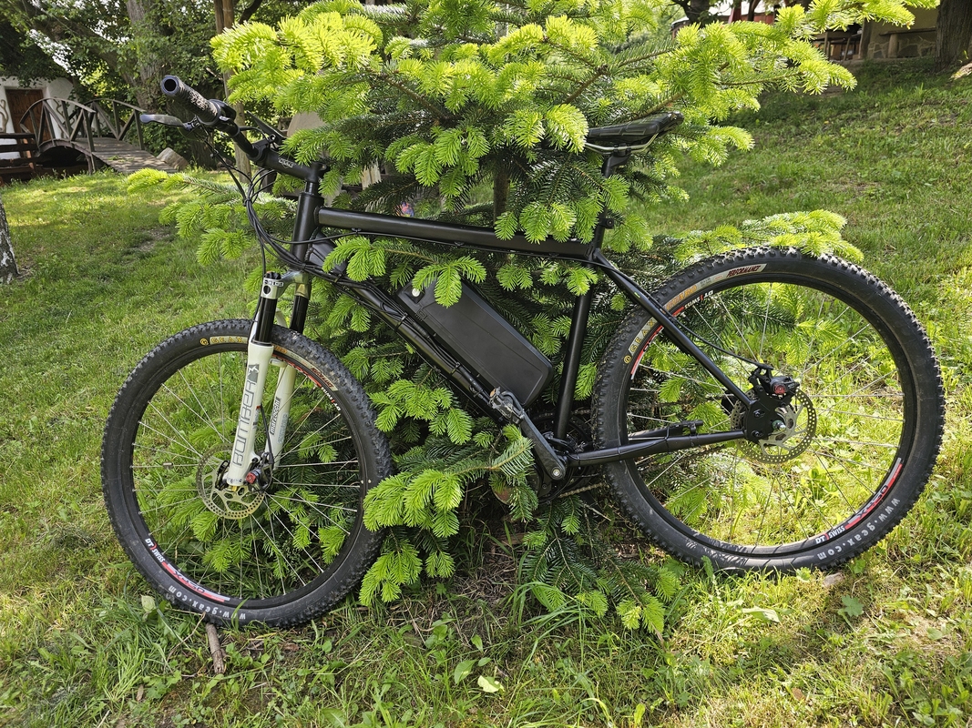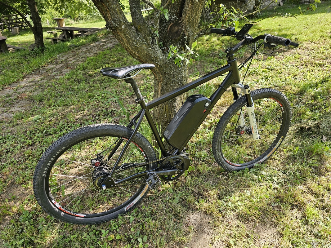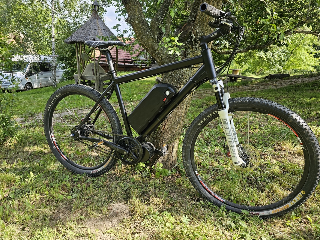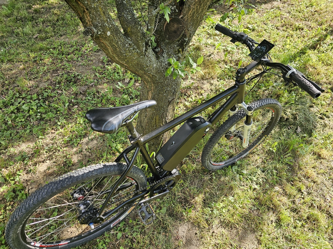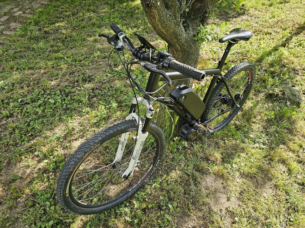 Ne fotkách je na kole namontována nová silna elektrosada, ale ta je nyní odmontována, ale můžeme případně opět osadit.