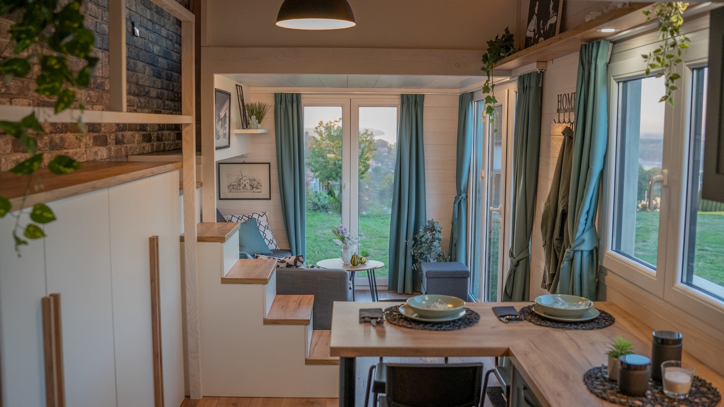 Můžeme zajistit i dovoz nového vyrobeného Tinyhouse domu 36m2 s dvěma lofty, vis fotky za cenu od 60tis.€ (1,5mil.Kč).
