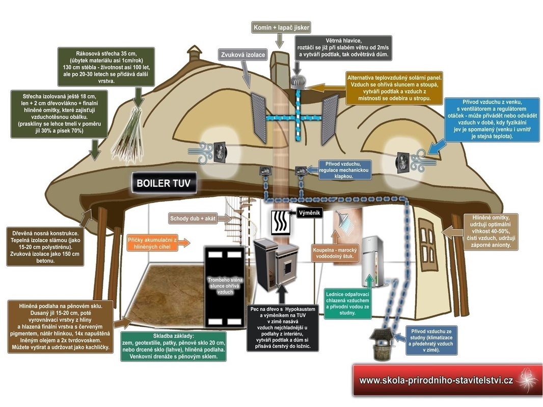 • Jak vyrobit na místě speciální voděodolné hliněné omítky a jak venku ošetřit, aby měli životnost až 80 let.