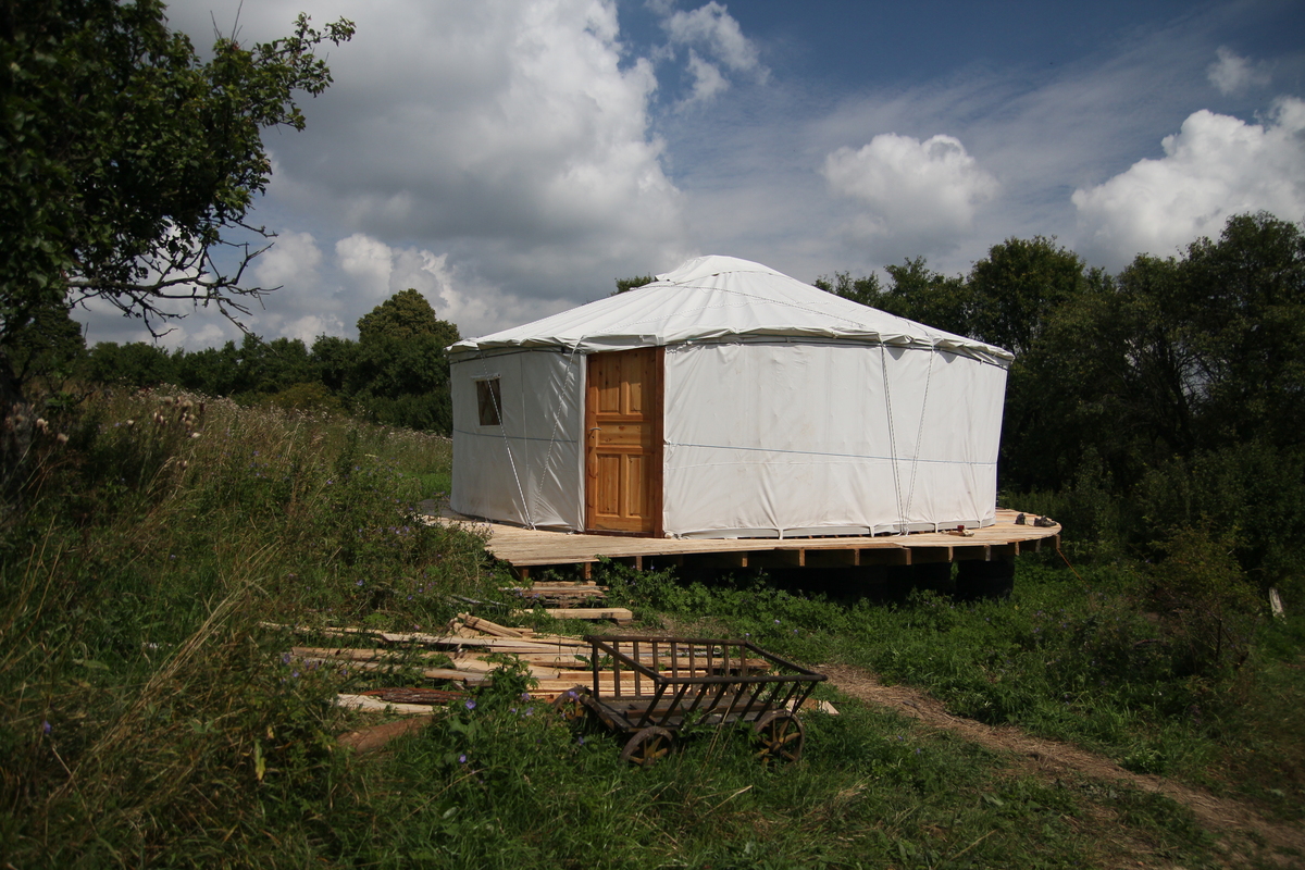O předešlém víkendu se tu sešlo 11 zajímavých lidiček, z různých koutů ČR a SR. Bylo to velmi příjemné, jedna skupinka čistila potůček a zahradu, jedna veselá skupinka tvořila vyvýšené záhony a jedna šla válet rákos, což jsme zjistili, že nejde, rákos byl jako guma :-). Postavili jsme společně konstrukci na jurtu a již zbývá jen nahodit plachty a svázat provazy. Na slaměný domeček se ani nedostalo. Bylo vidět jak po zimě byli všichni plní síly, udělalo se toliko práce na zahradě, až jsem se divil, kde ještě všichni brali sílu na večerní bubnování :-)...